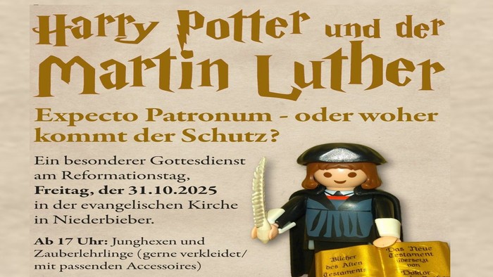 Harry Potter trifft Martin Luther – ein zauberhafter Reformationsgottesdienst mit Pfarrerin Natalie Wilke am 31. Oktober 2025 in der Evangelischen Kirche Niederbieber. Beginn 17:00 Uhr. Mehr erfahren→