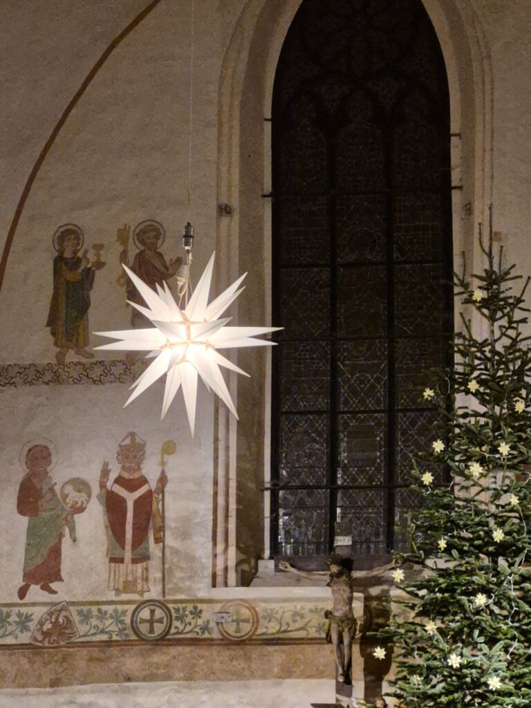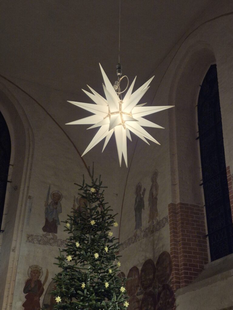 Zu den Bildern vom Herrnhuter Stern in der Kirche Behrenhoff, in der St. Marien Kirche Greifswald u.a.m.